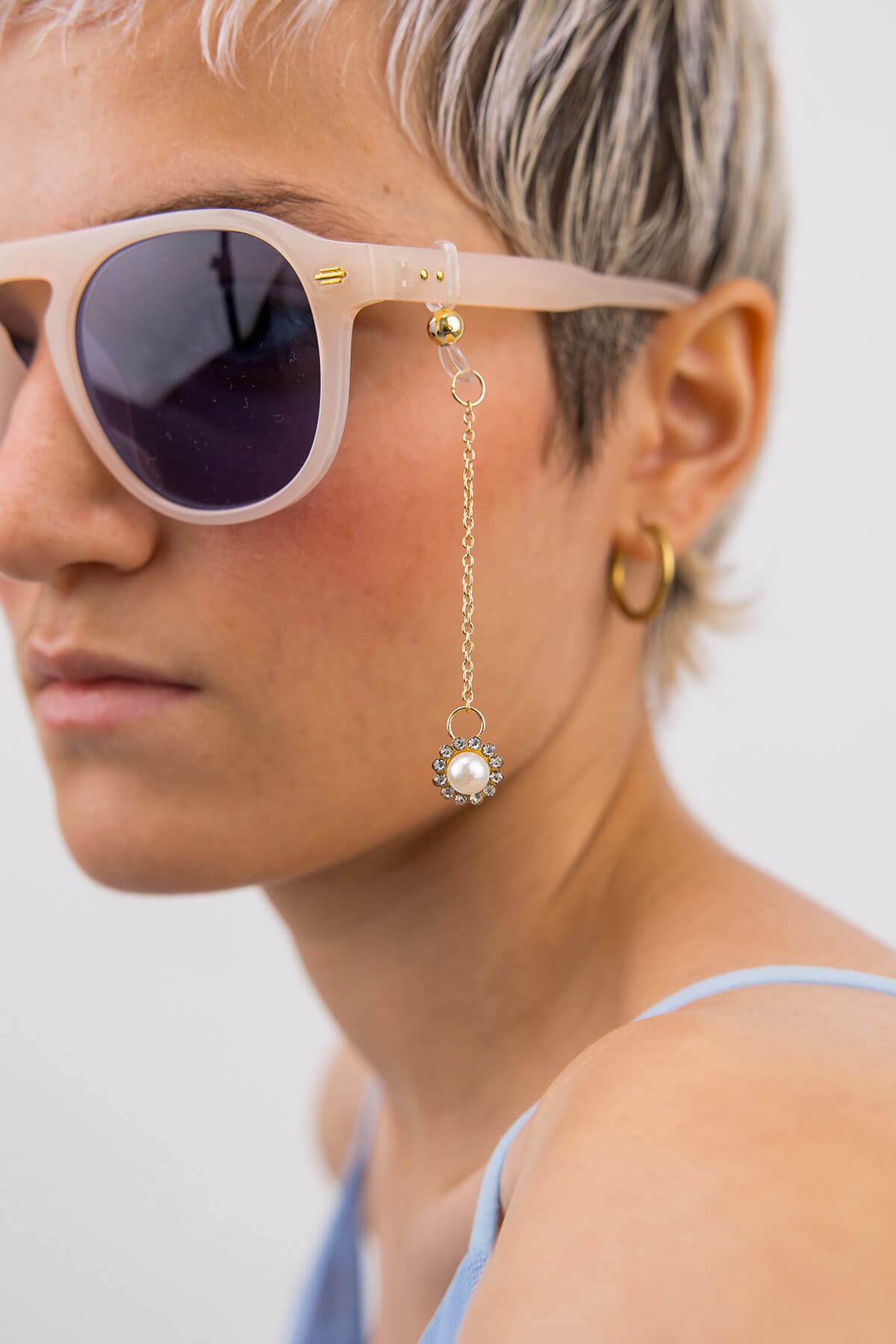 Güneş ve tüm gözlük modelleriniz için uygun gözlük aksesuarı . İnci detaylı kararma yapmayan özel kaplamalı İtalyan zincir.